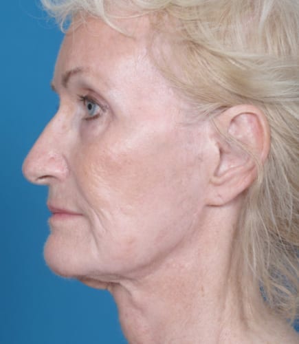 Patient who underwent Natural Looking Face and Neck Lift, complained of looseness of the skin of the neck with severe laxity. Photo shown 4 weeks post op with gorgeous improvement to the face and neck giving her a youthful looking appearance.